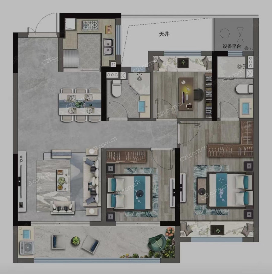 2室2厅 | 90平米 | 东